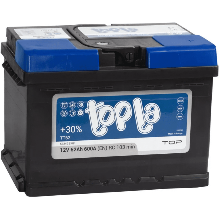 Аккумулятор Topla Top 6СТ-62 обеспечивает стабильный пуск двигателя даже при низких температурах и подходит для большинства европейских автомобилей с базовой и средней комплектацией электрооборудования.