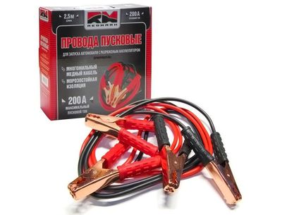Провода пусковые предназначены для того, чтобы осуществить дополнительную подпитку стартера в автомобиле с разряженной аккумуляторной батареей или загустевшим от мороза маслом. Применяются для запуска двигателей легковых и грузовых автомобилей при низкой температуре воздуха в холодное время года, а также после длительного хранения автомобиля, вызвавшего саморазряд аккумуляторной батареи. Провода длиной 2,5 метра и пропускают ток силой до 200 ампер.